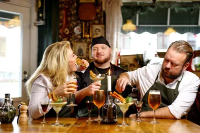 Franks Kro er stedet, hvor alt sker med fest og farver med et lille glimt i øjet, og hvor cocktailglasset er fyldt med persillesovs og stegt flæsk.