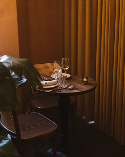 Det intime og hyggelige rum skaber en uformel ramme, hvor du kan udforske nye smagsnuancer på både tallerken og i glas.
